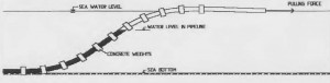 Prior to the work of sinking, the pipe must be floating on the sea and contain concrete counterweights and separations in the amounts indicated in the engineering design. The sections must be linked through flanges with bolts, nuts and washers preferably stainless steel. The pipe shall be equipped with coupling flanges at each end of the long to be sunk (usually from 300 m to 600 m in length) sections. When the long stretches have been tested with test pressure and are sealed at their ends, floating with all its balances, it is said that the pipeline is ready for relocation process. The tubes will be transported to the shaft sinking through marine vessels located for this purpose.